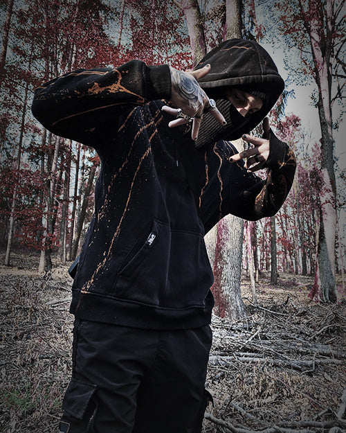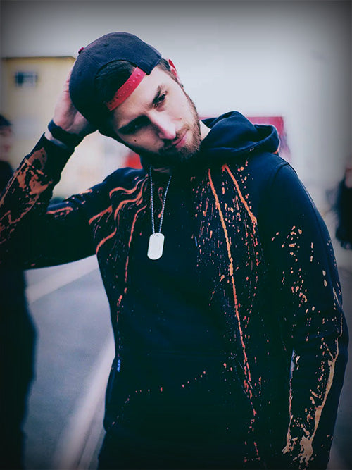 Hinweis: Durch die Bleiche kann an den hellen Stellen der Stoff aufrauhen. Das ist ein bewusster Effekt, der auch erst nach einigen Waschen sichtbar werden kann. Dahinter befindet sich der Innenfliess, der verhindert dass der Hoodie an diesen Stellen löchrig wird. Solltest du Fragen haben, kontaktiere uns gerne jederzeit :)